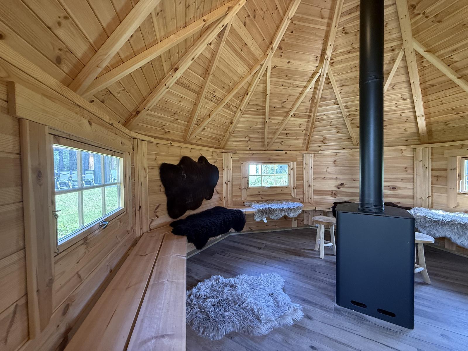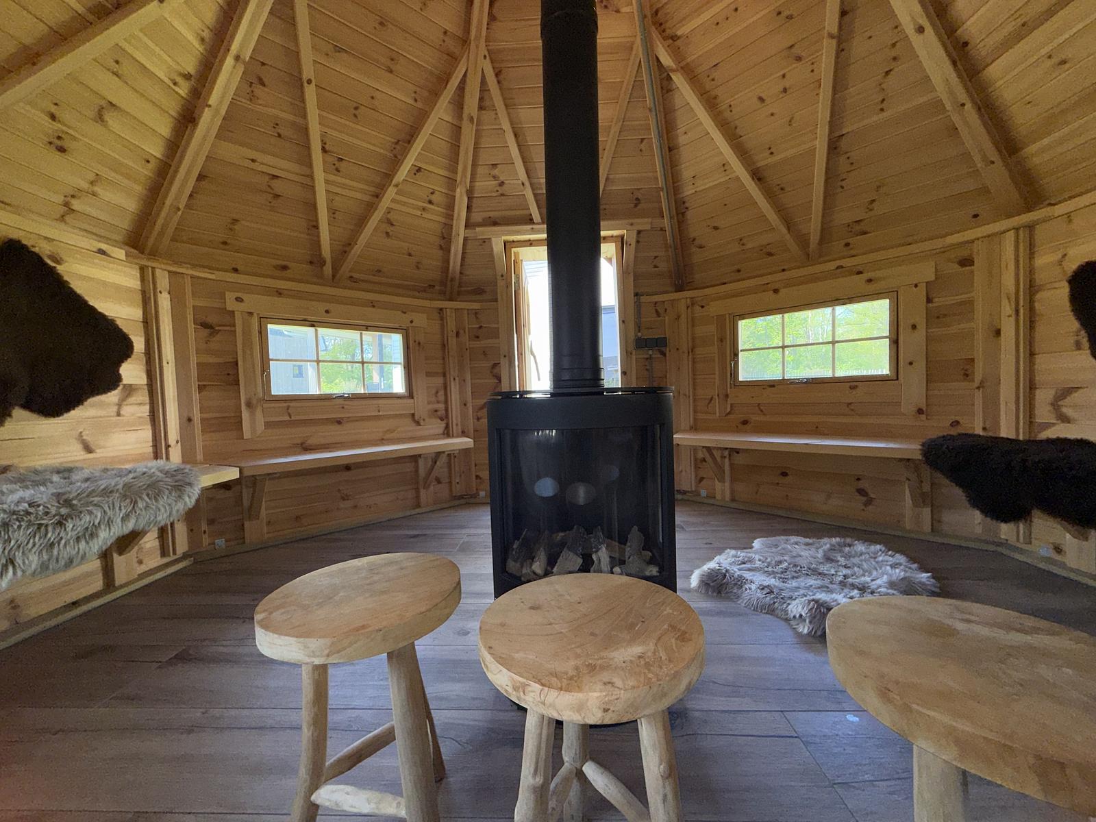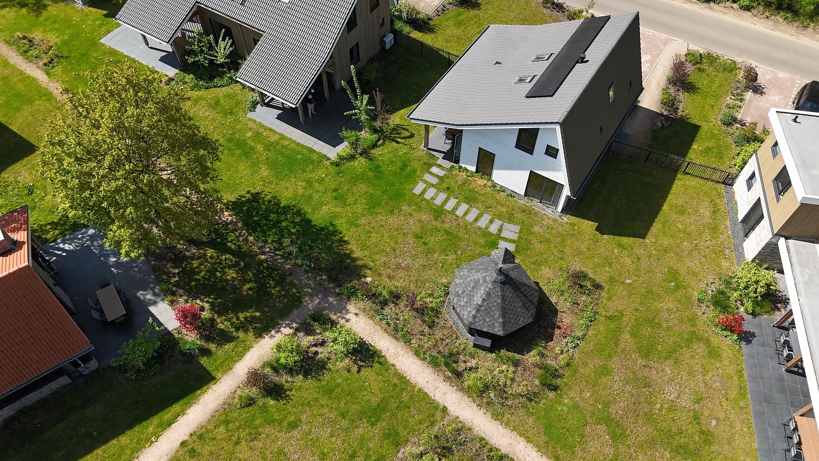 Als kers op de taart beschikt deze kavel over een prachtige Finse Kota. Deze achthoekige, duurzame blokhut van hoogwaardig Fins grenenhout biedt een unieke beleving. Of het nu een zwoele zomeravond is of een frisse herfstdag; in de Kota geniet u van een goed boek of een gezellige borrel bij het veilige (nep)haardvuur. Het is de ultieme plek om even helemaal te ontsnappen aan de dagelijkse hectiek.