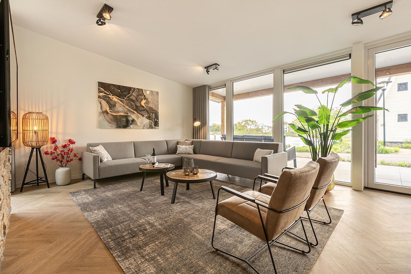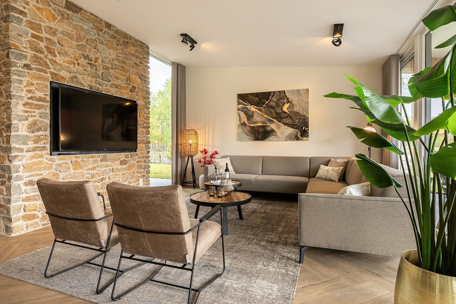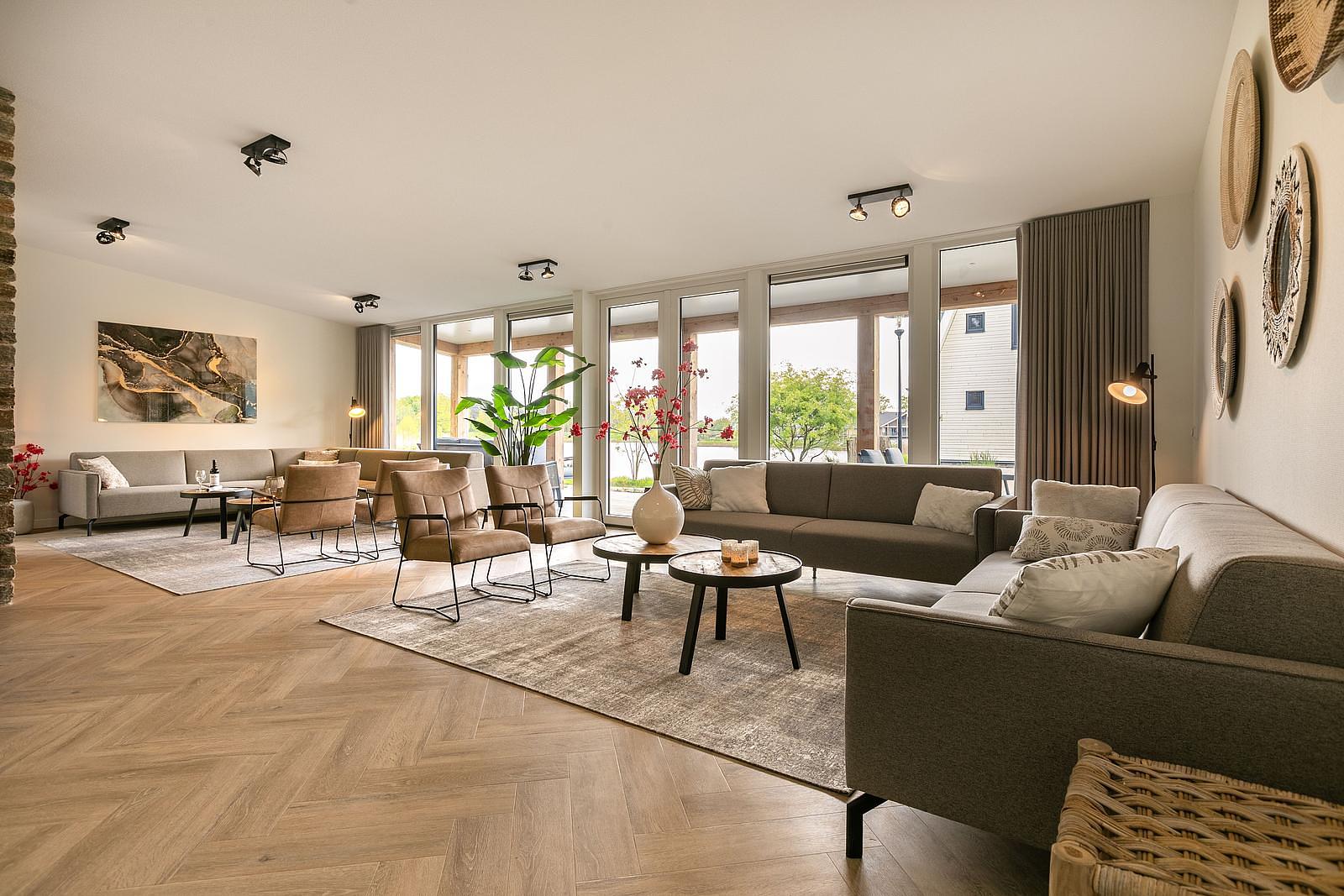 ✓ Royale woonkamer Met dubbele hoekbak en ruime zitgelegenheid.