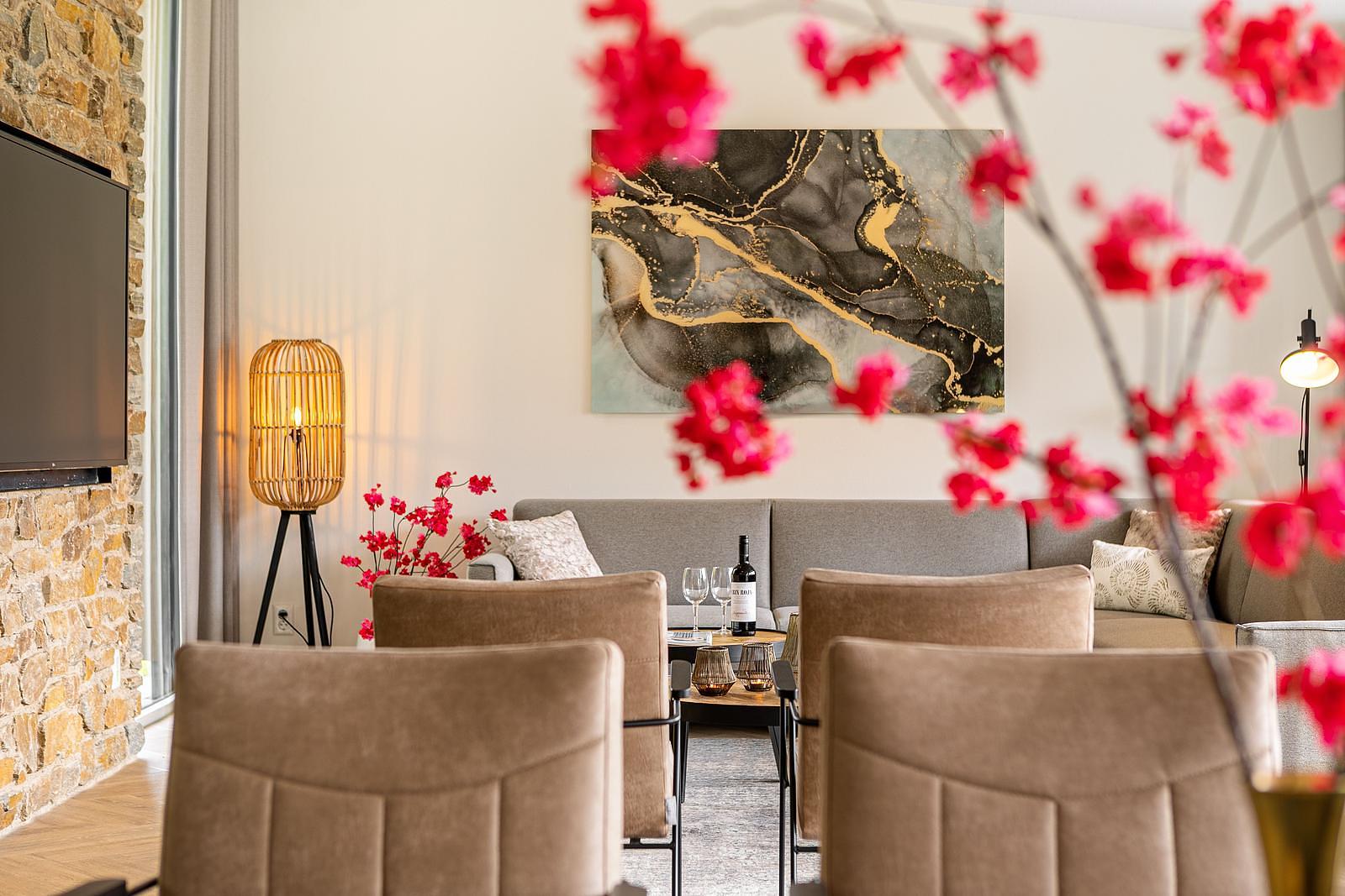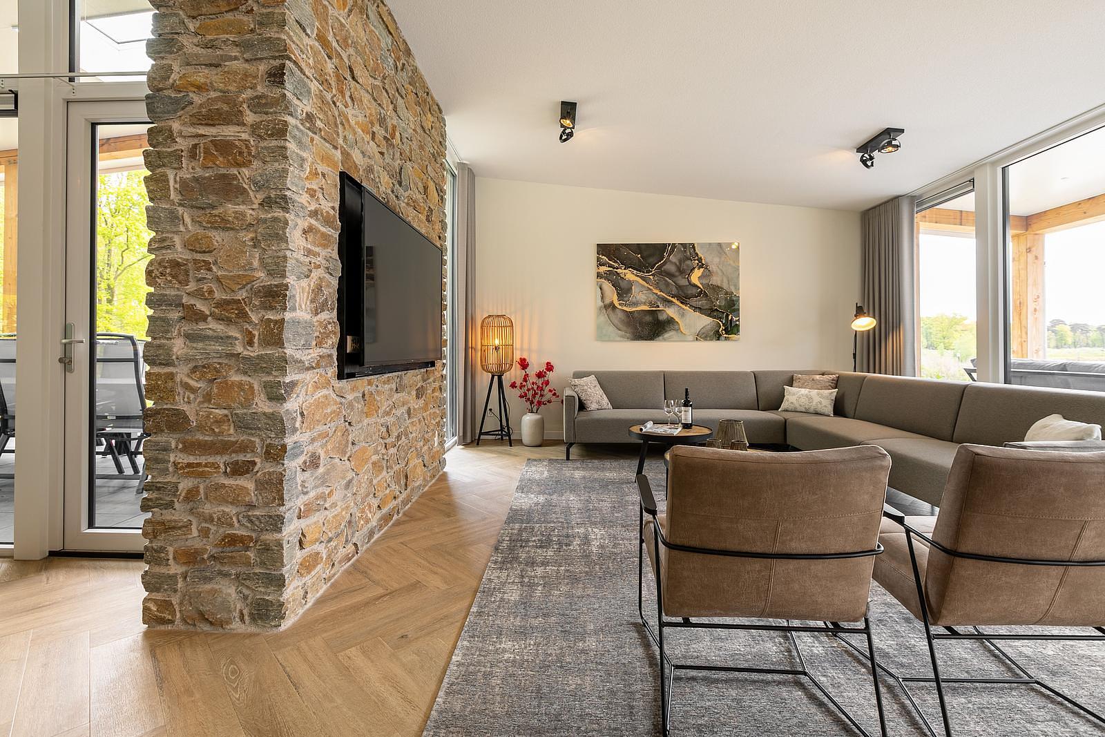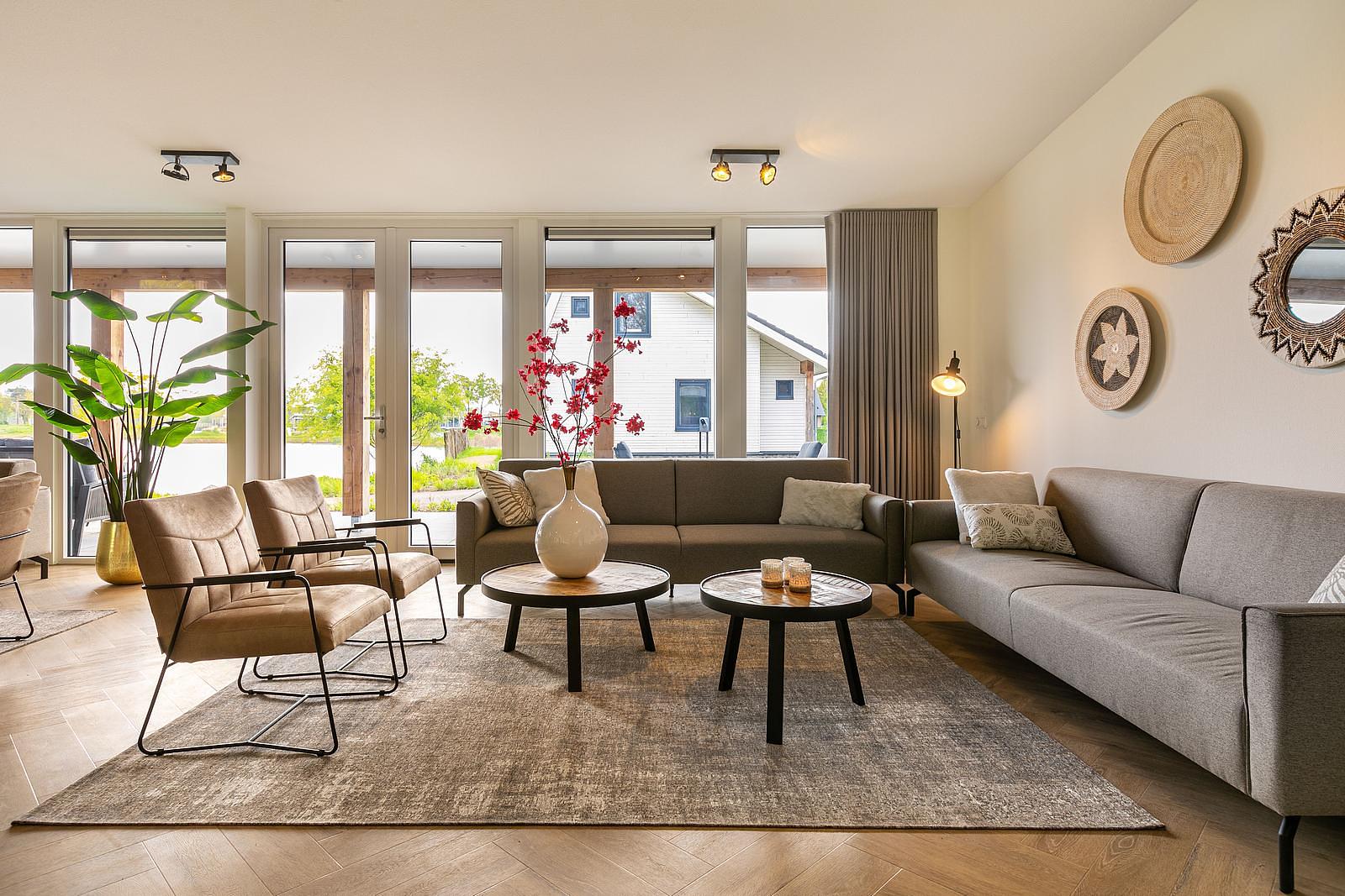 ✓ Royale woonkamer Met dubbele hoekbak en ruime zitgelegenheid.