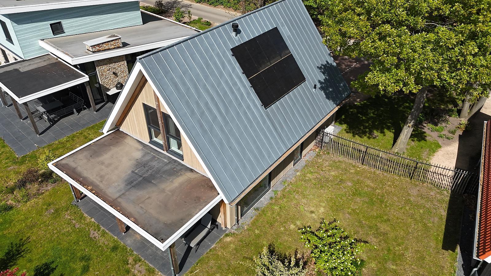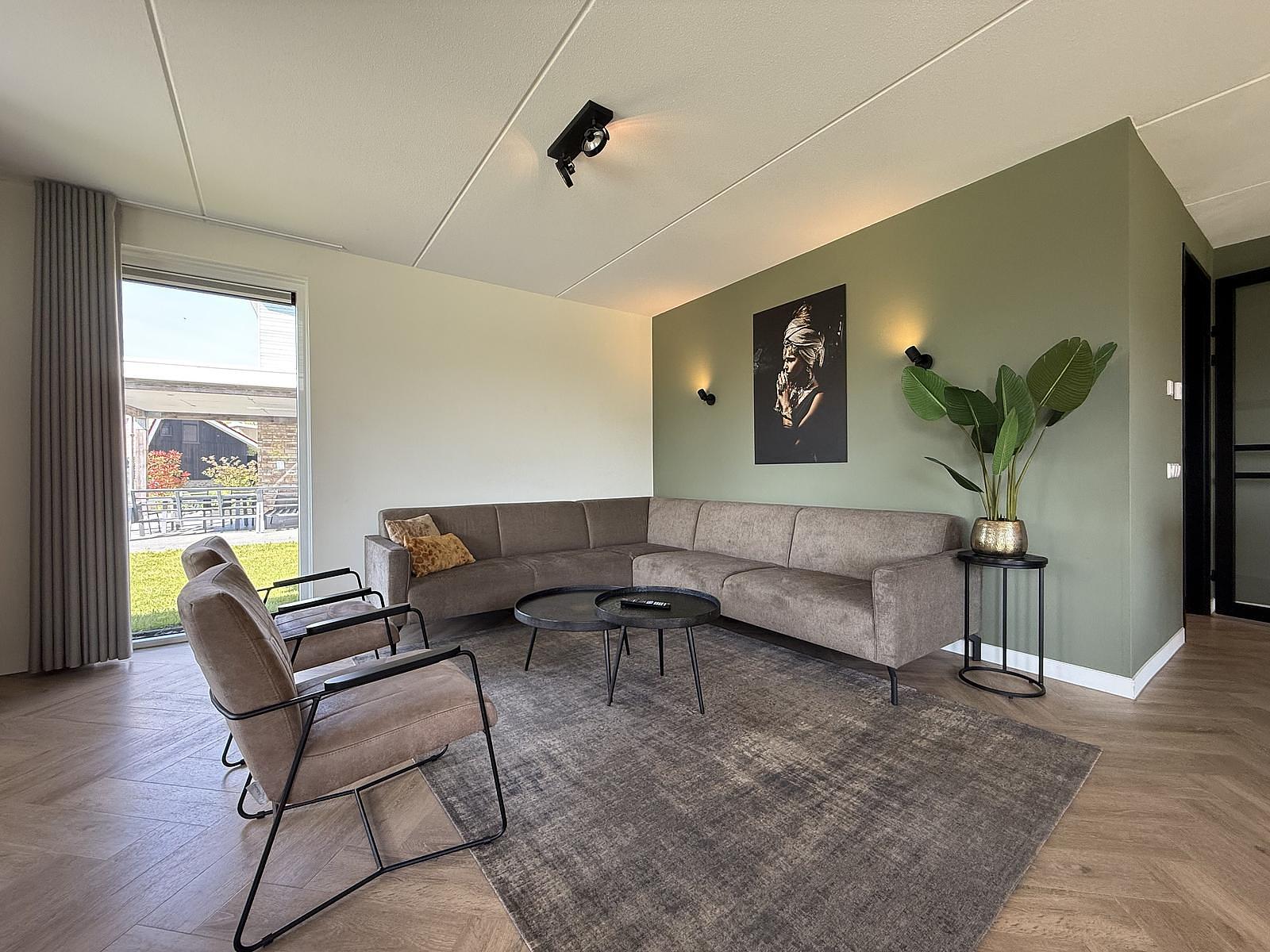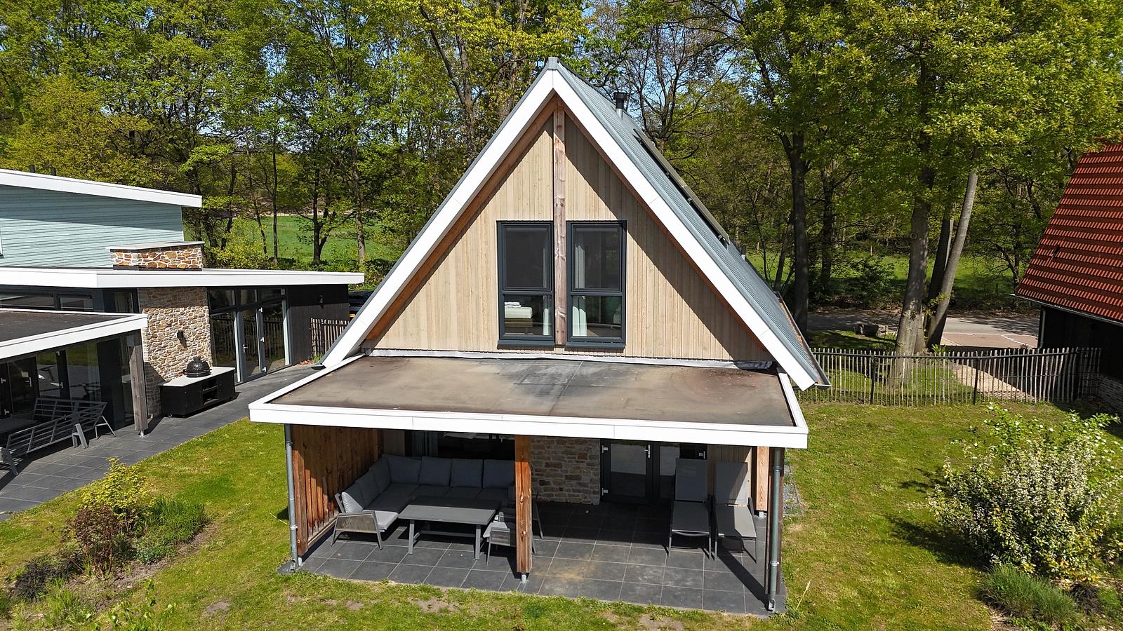 Buiten geniet u het hele jaar door onder de imposante veranda (725 x 300 cm) die over de hele breedte van het huis loopt. Met de aanwezige luxe ligbedden is dit dé plek voor een goed boek met uitzicht op de natuur.
