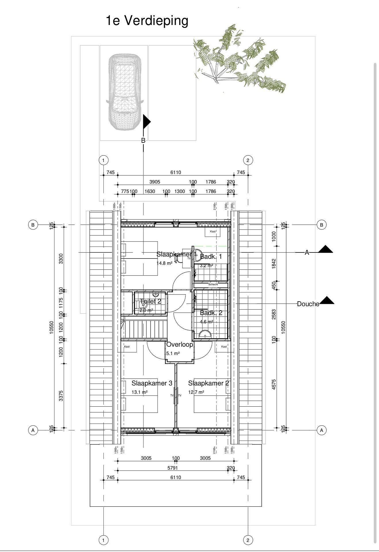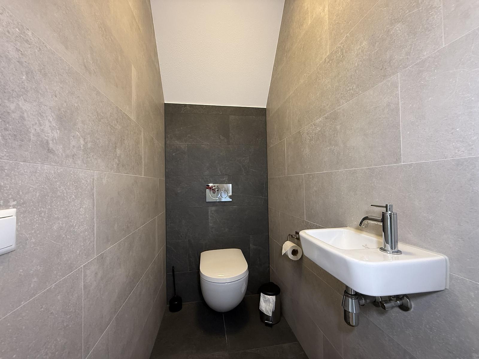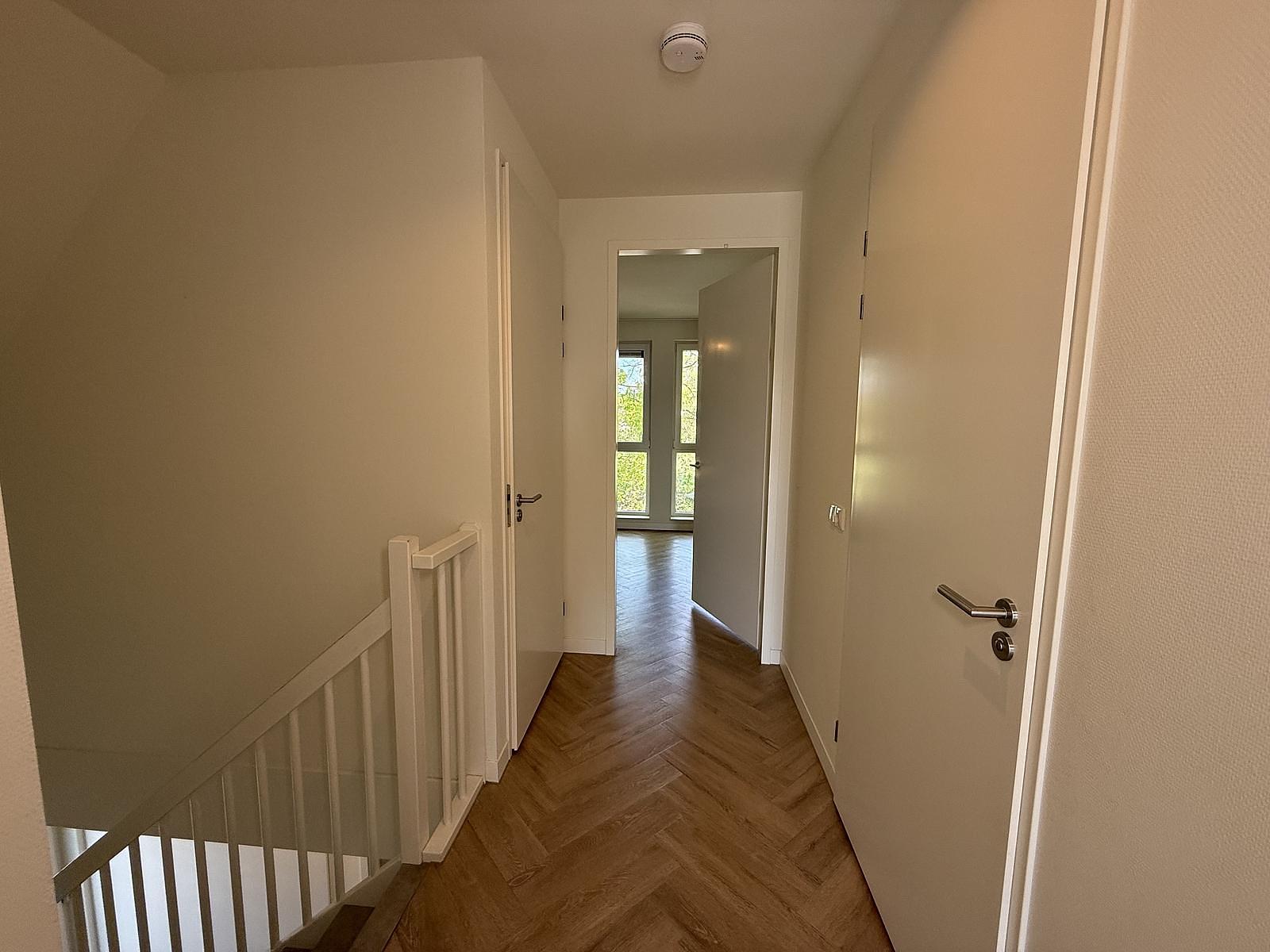 De bovenverdieping biedt drie royale slaapkamers en een separaat toilet. De Masterbedroom is met 18 m² zeer riant en beschikt over een eigen badkamer. De overige twee kamers delen een tweede stijlvolle badkamer. Alle ramen op de verdieping zijn voorzien van horren voor optimaal comfort.